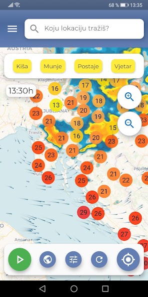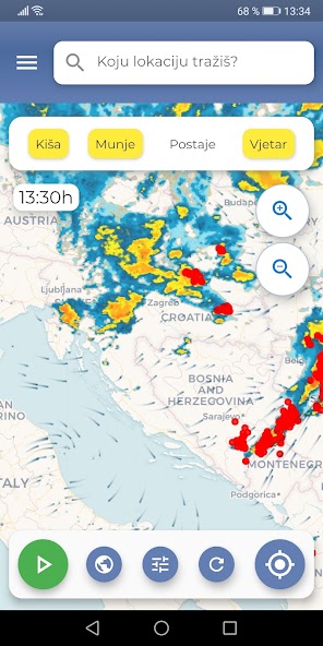 Siga el movimiento de nubes, precipitación y tormentas en tiempo real y el pronóstico del tiempo para todos los lugares en Croacia y sus alrededores.